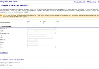 Fill out your contact information as you want it to appear on your new GMRS license.